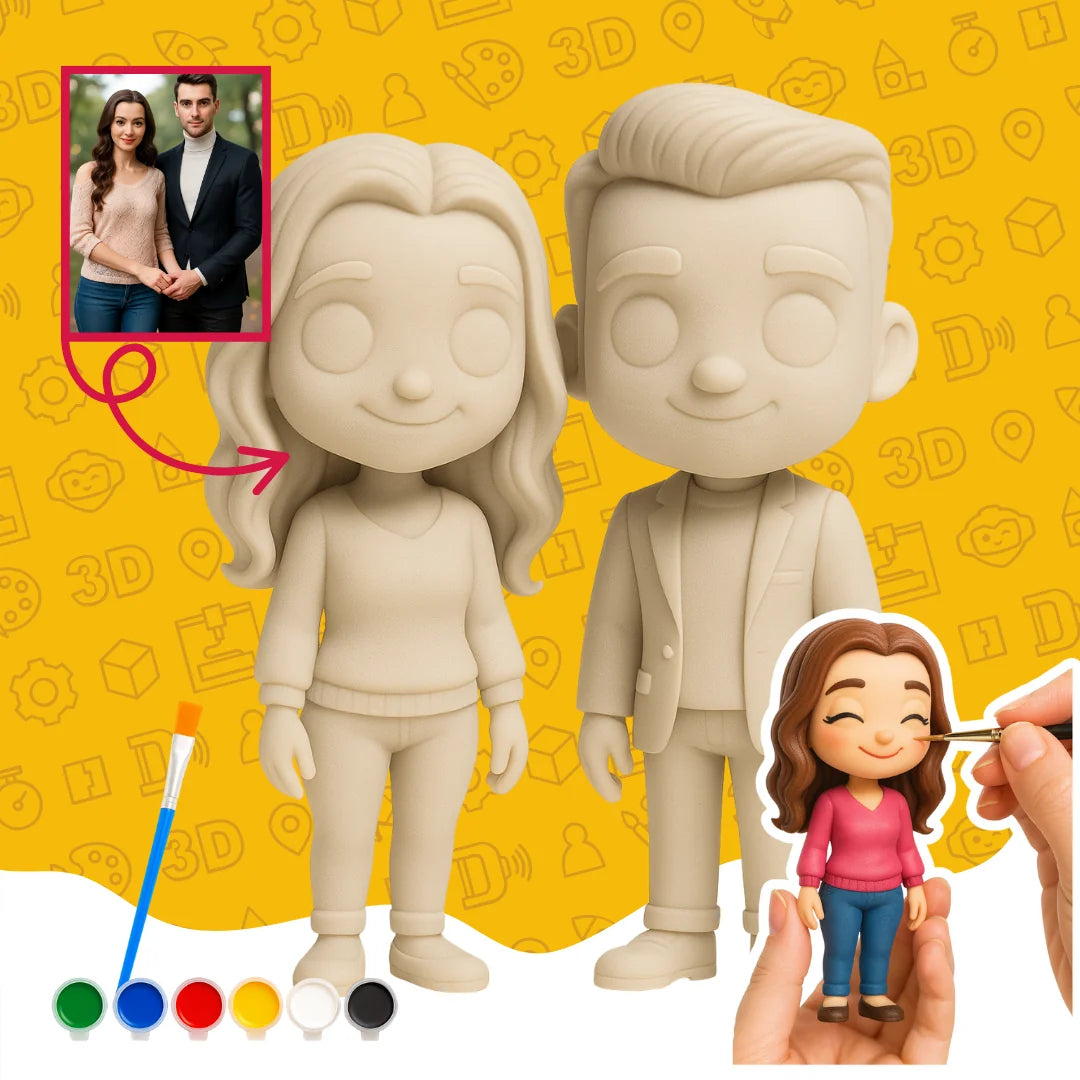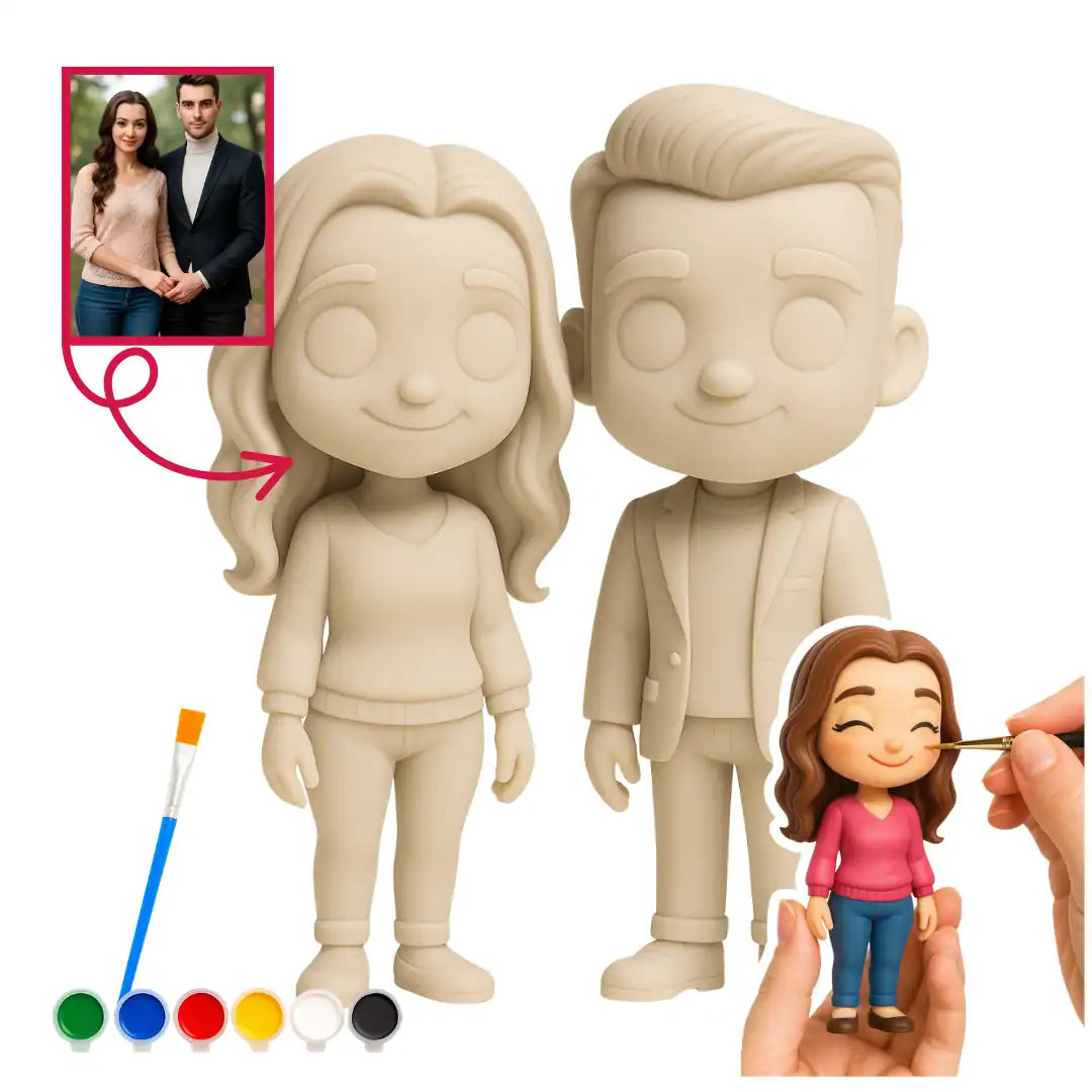 Tek bir fotoğrafla, sevgili çift figürünüzü gri boyanabilir halde üretin ve hayallerinizi renklendirin. Figürland, yapay zekâ destekli tasarım süreci ile yüksek kaliteli, kişiye özel 3D figürler üretmektedir. Bu süreç, yüz hatlarınızı ve pozunuzu birebir yansıtarak, figürünüzün gerçekçiliğini artırır.
