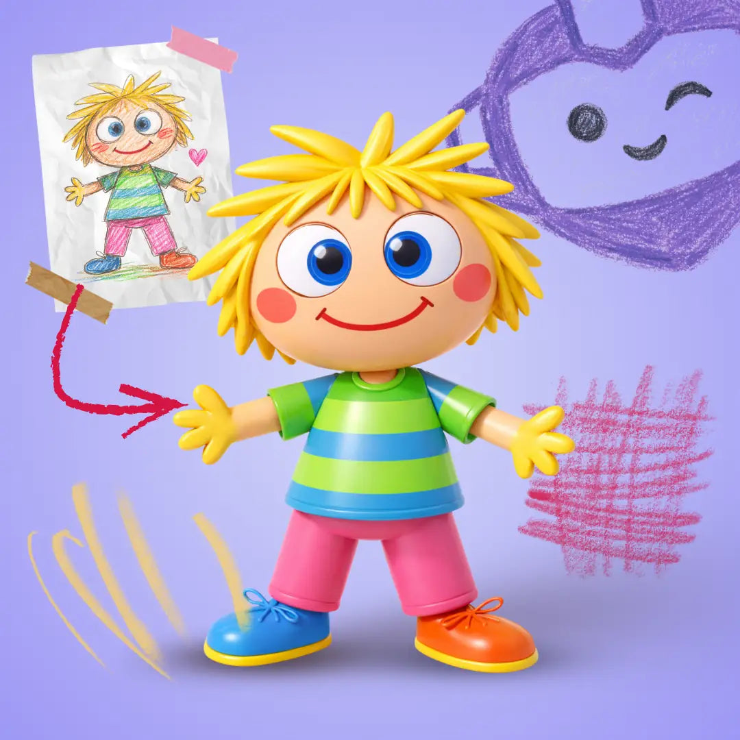 Ortaya çıkan figür, tamamen size özeldir. Çocuğunuzun özgün çiziminden ilham alarak üretilir ve kişisel bir dokunuşla hazırlanır. Bu figür, sadece bir oyuncak değil; çocuğunuzun yaratıcılığını ve hayal gücünü kutlayan kalıcı bir hatıra olur.